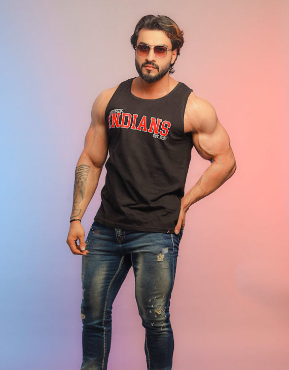 Aesthetic Indians Black Stringer gives you a unique & best quality. You feel very proud after wearing this cool stringer. This is the best workout partner.