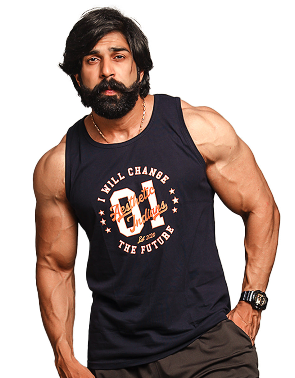 Aesthetic Indians Navy Blue Stringer gives you a unique & best quality. You feel very proud after wearing this cool stringer. This is the best workout partner.